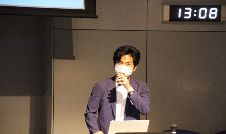 まず冒頭の学長挨拶では,ITの教育研究に力を入れている神奈川工科大学として,eスポーツを教育研究の対象とすることでeスポーツのこれからの発展に貢献するべく,NTT東日本,NTT e-Sportsと3者連携協定を結んだという話がありました.続く基調講演では,横浜Fマリノスの武田氏より「eスポーツにおける『スポーツの力』とは」というタイトルで,横浜Fマリノスでの取り組み紹介からeスポーツの活動が社会に貢献できることまで幅広い視点でのお話がありました.